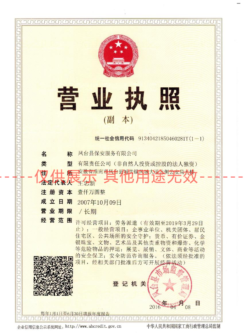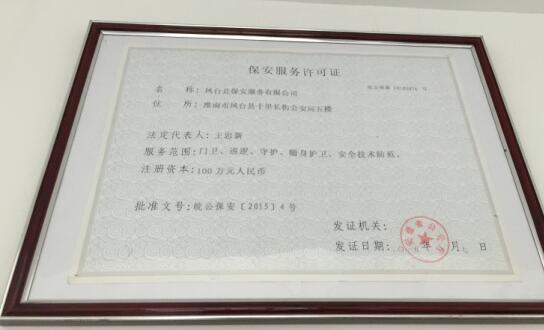 齊備的國家資質認證保安服務許可證